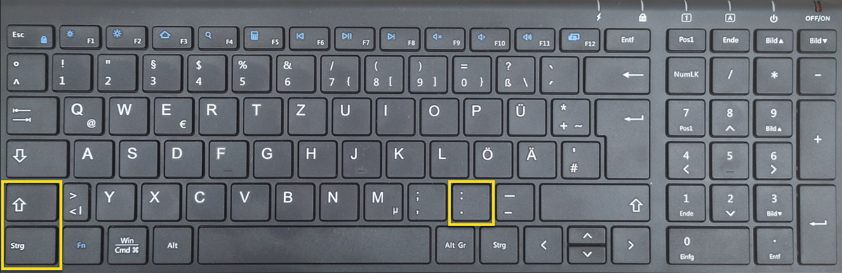 Mit der Tastenkombination Strg + Umschalt + :