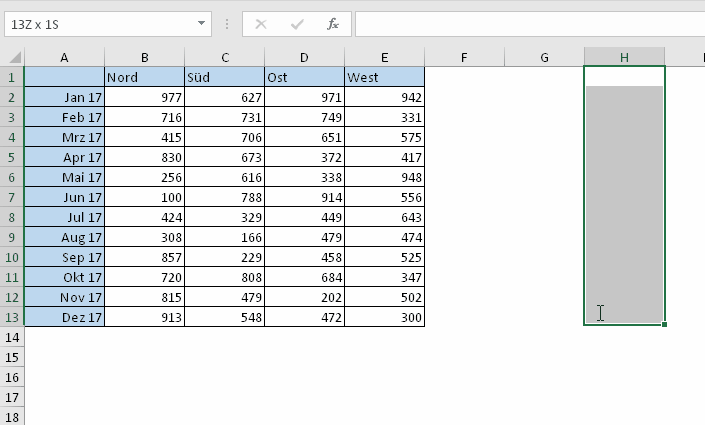 Den besten Effekt erzielst du übrigens, wenn du die Zeile und die Spalte mit den Array-Formeln noch ausblendest. Was uns zu Quickie Nr. 3 bringt!